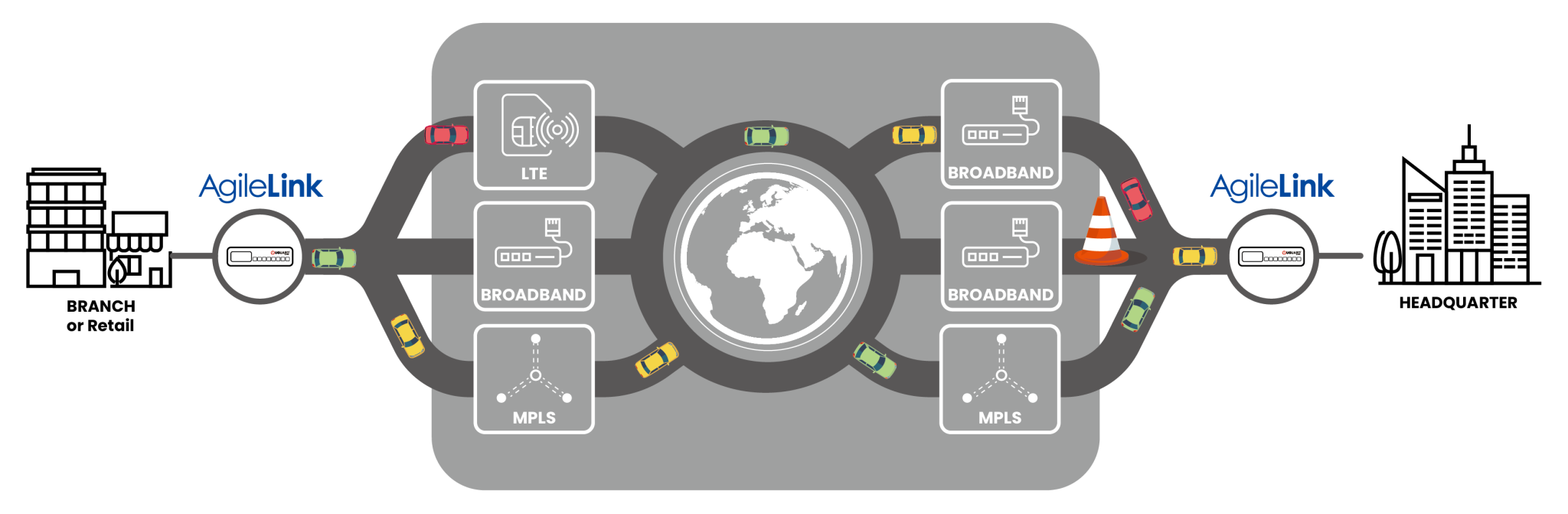 圖:WarpTunnel™ 技術在各據點間建立多條邏輯連線通道與聚合,確保資料經由最有效率的通道進行傳遞,並在傳遞的過程進行 AES 256 加密防護。